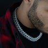 Our 16mm Baguette Curb Cuban Chain is a handcrafted piece, fully iced out with hand-set baguette stones.
