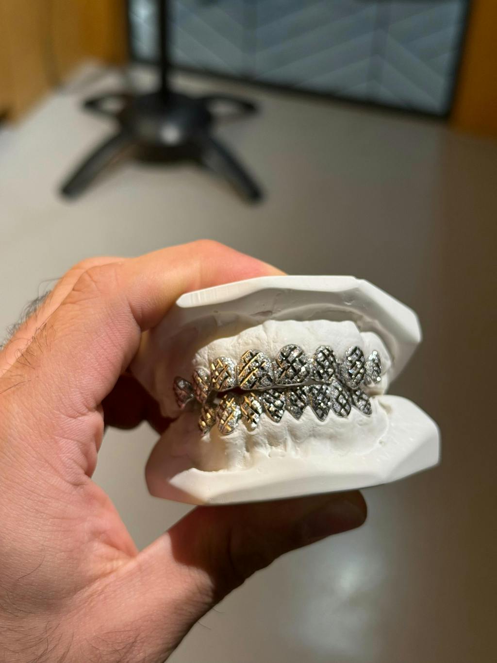 We craft our plain grillz using a range of high-quality materials, including dental-grade silver, which is tarnish-proof and comes with a lifetime guarantee. Other premium options, such as dental-grade rose gold and yellow gold, are also available and are designed for lasting durability and comfort in the mouth.
