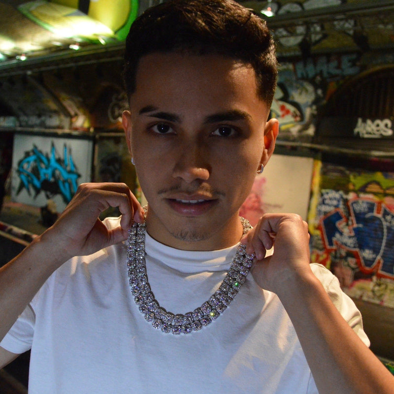 Our Solitaire Silver Cluster Tennis Chain is truly a one of a kind piece. Each link within the Chain comprises a central stone encrusted with surrounding micro stones that make it a real piece of art. The chains true beauty can not be captured using an image as its physical interaction with light is breathtaking.