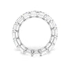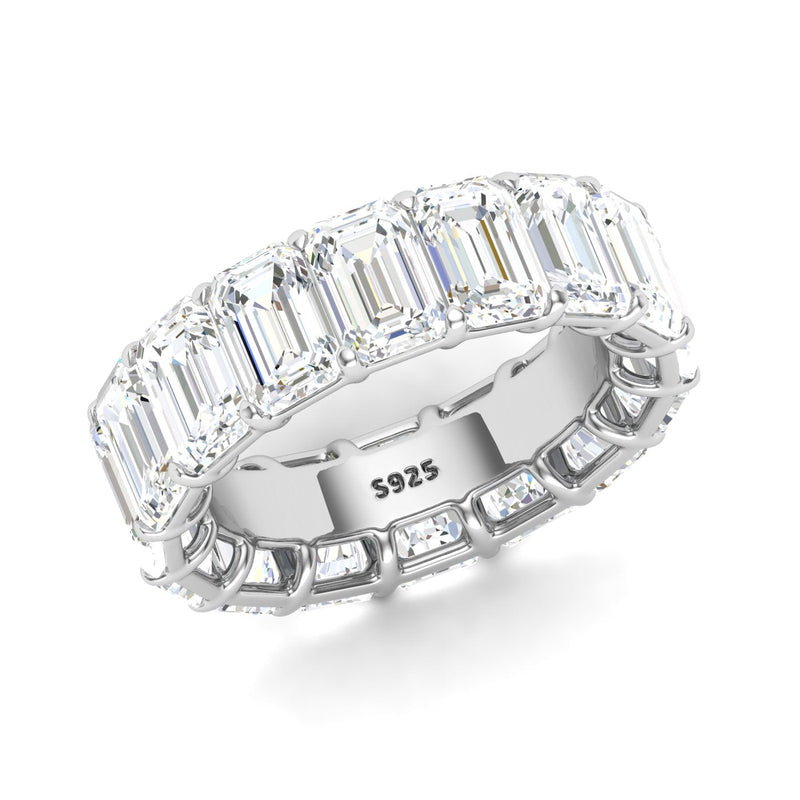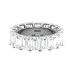 A subtle, modest sterling silver baguette shaped Cubic Zirconia ring. Its parallel, elongated encrusted structure, each securely captured using 4 prongs for simplicity and singularity.
