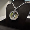The boarder and bail of our medium memory pendant is fully encrusted with a single row of 4mm stones that are handset using a claw setting.